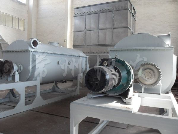 槳葉式干燥器分為熱風(fēng)式和傳熱式。熱風(fēng)式即通過熱載體(如熱空氣)與被干燥有物料相互接觸并進(jìn)行干燥,在傳導(dǎo)式中熱載體并不與被干燥的物料直接接觸,而是熱表面與物料相互接觸。傳導(dǎo)式的優(yōu)點(diǎn)是物料不易被污染,排氣量小,熱效率高,體積相對小,有利于節(jié)約能源及防止空氣污染。