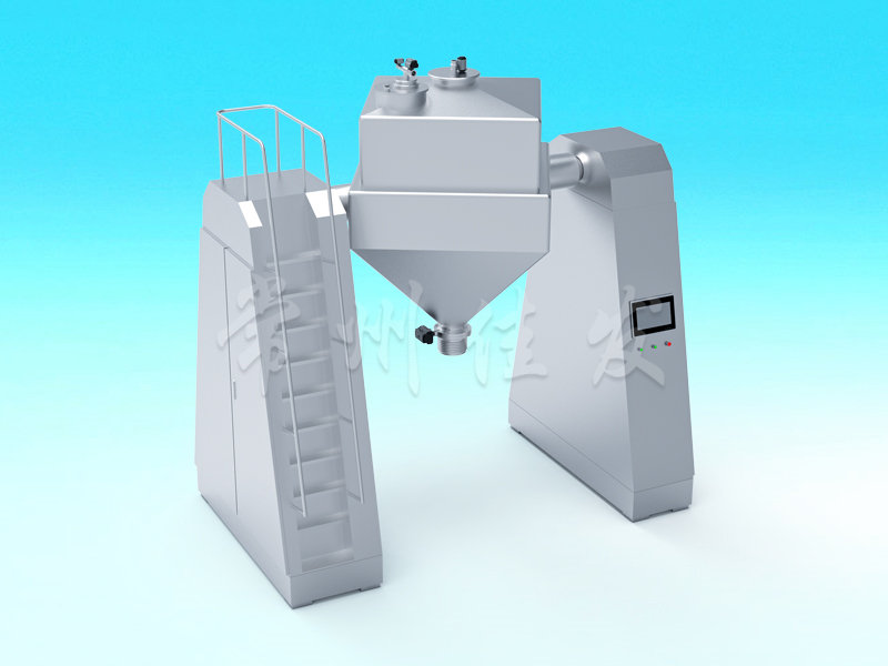 本機混合筒在傳動的同時又參與擺動,使筒中物料得以充分混合,混合筒的出料帶有螺旋葉片,使該機具有混合迅速,混合量大,出料便捷等特點。