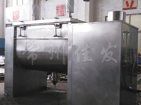 該機(jī)型由容器 螺旋攪拌葉片和傳動(dòng)部件組成,螺旋葉片一般做成雙層或三層,外層螺旋將物料從兩側(cè)向中央?yún)R集,內(nèi)層螺旋將物料從中央向兩側(cè)輸送,形成對流混合。容積可做成圓形,以便夾套及于反應(yīng)干燥。