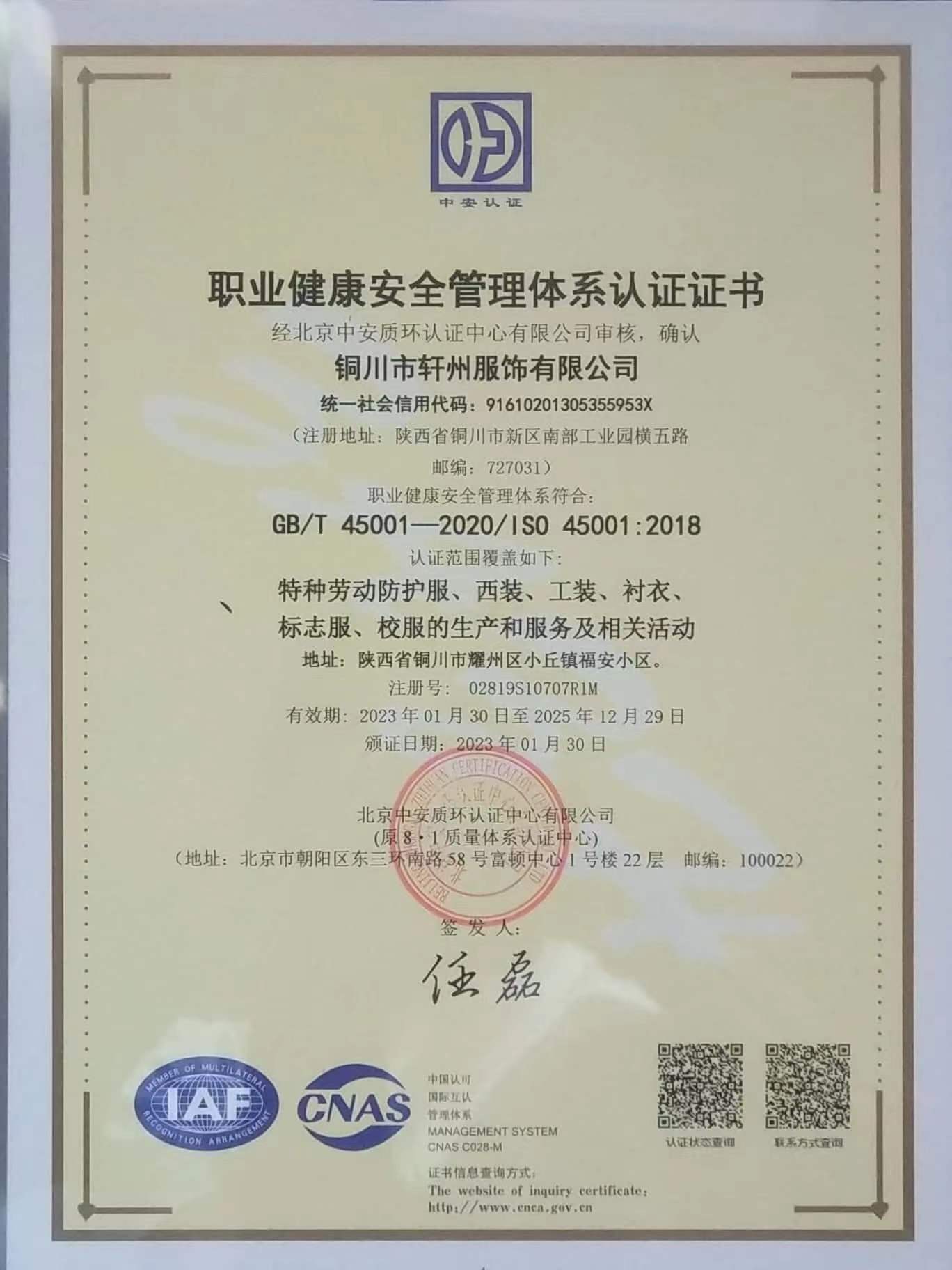 職業(yè)健康安全管理體系認(rèn)證證書(shū)