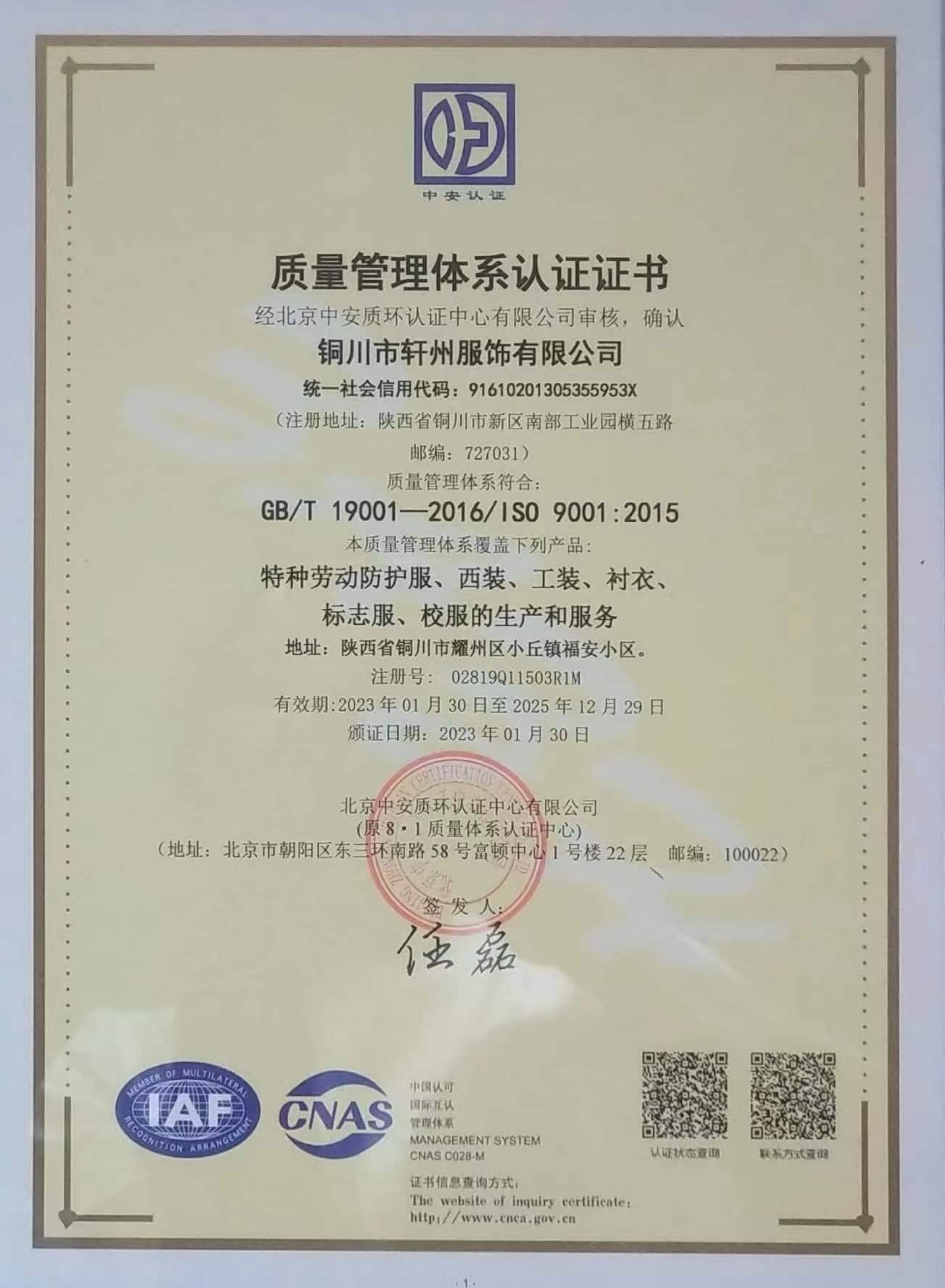 質(zhì)量管理體系認(rèn)證證書(shū)